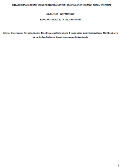 Για να κατεβάσετε τις Χρηματοοικονομικές Καταστάσεις του 2023 πατήστε εδώ